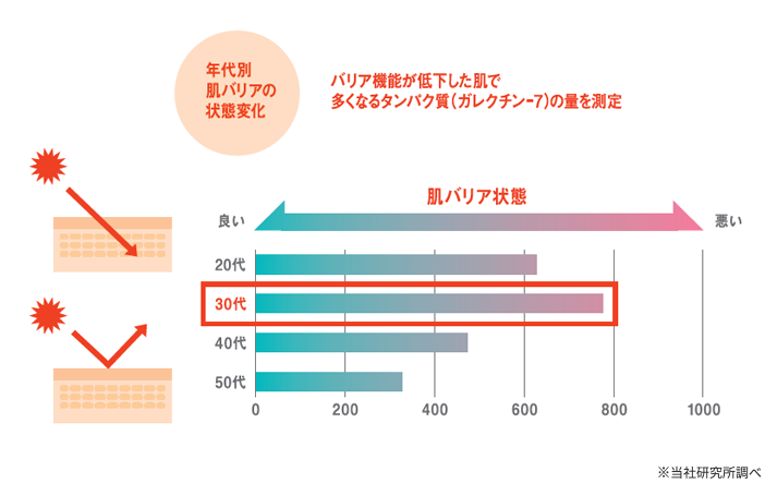 実は、私たちの研究で発見したのですが、30代は他の世代と比べて“肌のバリア機能が低い”んです。